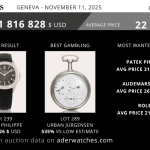 Occupant la première place du classement des meilleurs prix de la vente, PATEK PHILIPPE a réalisé le meilleur chiffre de la vente soit 2 361 088$ USD